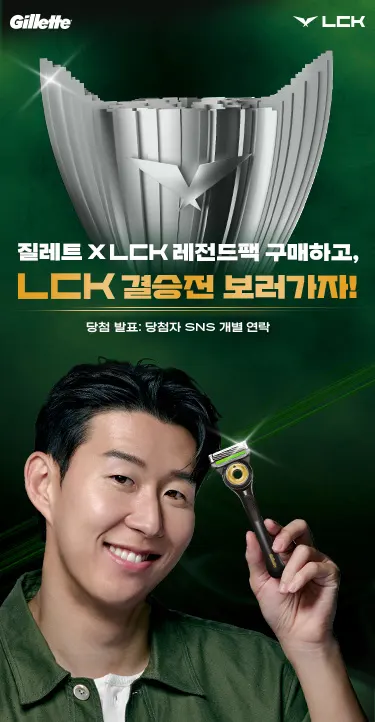 4/1 – 6/30행사 기간 동안 질레트 X LCK 레전드팩 제품 구매 등록 시 2026 LCK 결승전 티켓 이벤트에 자동 응모됩니다.