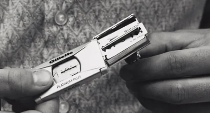 1903년 질레트는 세계 최초의 시스템 면도기를 선보였습니다. 이 2단 안전 면도기는 얇고 강하며 날카로운 양면 면도날이 재사용 가능 손잡이에 부착되어 있는 형태였습니다. 질레트 시스템 면도기는 시장에서 엄청난 파장을 일으켰고, 얼마 지나지 않아 면도날 수백만 개가 판매되었습니다. 질레트 플래티넘-플러스® 양면 면도날은 오늘날에도 판매되고 있습니다.